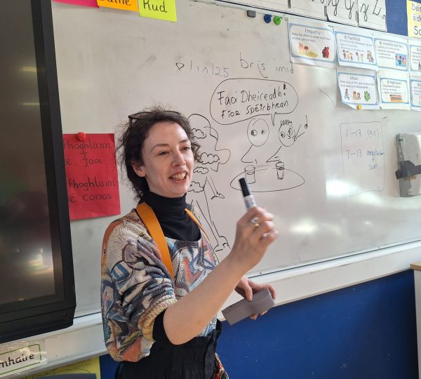 Caoimhe, who is based in Dublin, came to Gaeltacht an Eachréidh to lead two 90 minute cartooning workshops ‘as Gaeilge’ in the two schools.